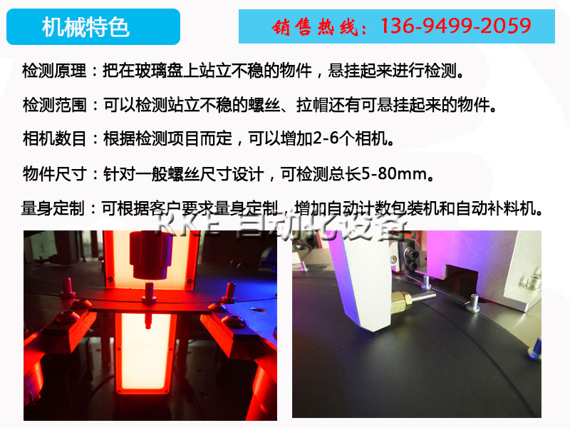 分度盤篩選設備檢測螺柱,把在玻璃盤上站立不穩的物件,懸掛起來進行檢測。檢測範圍廣,速度快,精度高