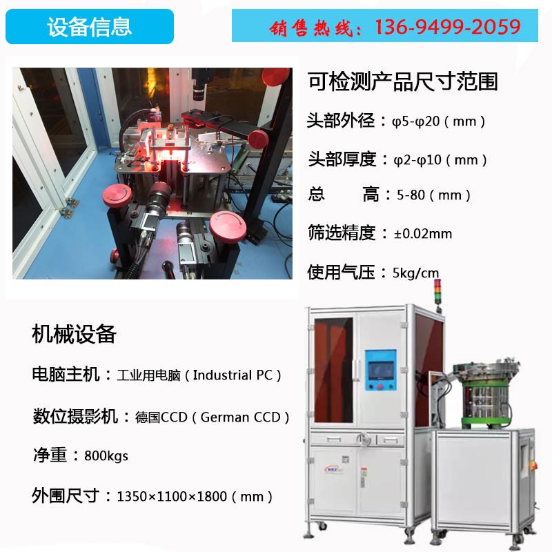 檢測產品的頭部直徑、多段高度頭厚 |
