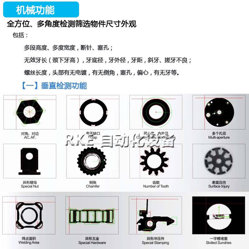 1、可以同時檢測尺寸、外觀、深度還有不同材質混料或者是熱處理混料,熱處理硬度是否達標等。